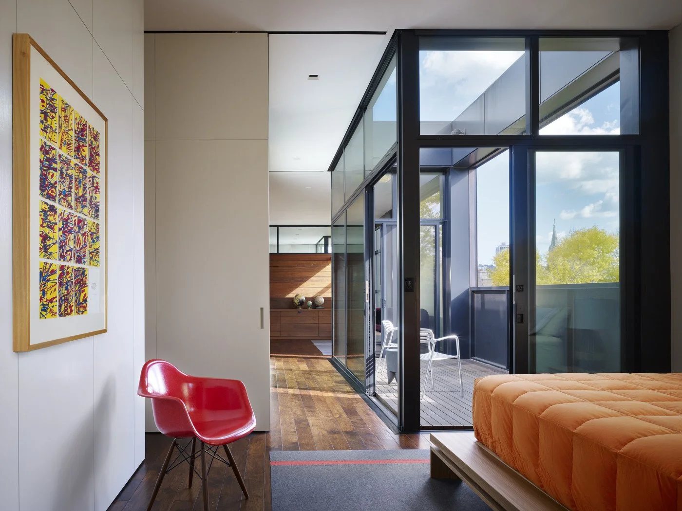 The distinction between public and private spaces is further emphasized through a thoughtful selection of materials and finishes. At ground level, natural materials weather and patina over time, embracing the changing seasons and evolving with the environment. As one ascends to the upper floors, a shift in material palette creates a sense of intimacy and seclusion, offering respite from the bustling cityscape while framing distant views of the Chicago skyline.